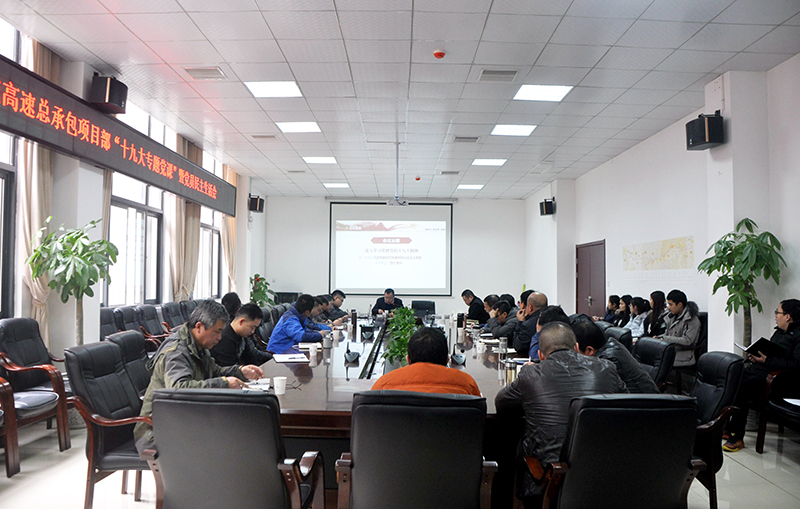 2月8日下午,路桥集团常务副总经理、纪委书记李高磊在鄂咸高速总承包项目部为广大干部职工作了题为《不忘初心 牢记使命--在党的十九大精神指引下推动项目全面建设》的专题党课,鄂咸项目全体党员干部27人参会。