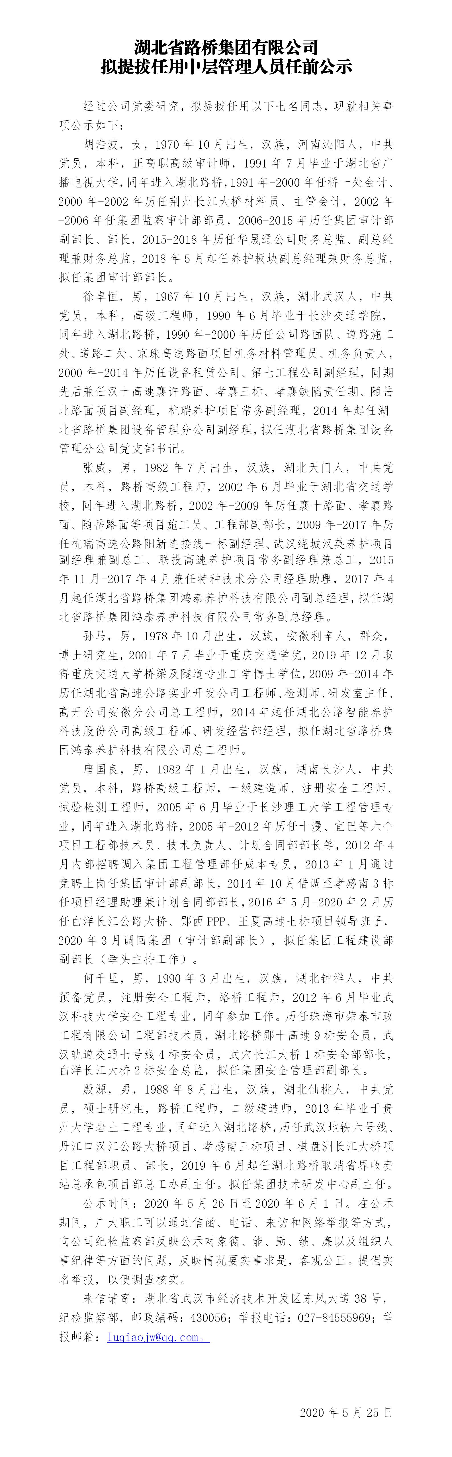 华体会平台参加2019年度湖北省建筑工程技术高级职称评审、湖北省路桥、港航专业高级职称评审、联投集团建筑、交通、化工、林业等专业职称评审人员公示名单