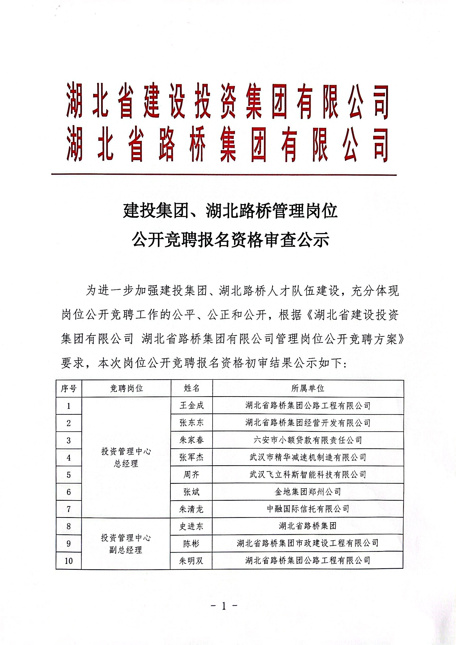 建投集团、湖北路桥管理岗位公开竞聘报名资格审查公示
