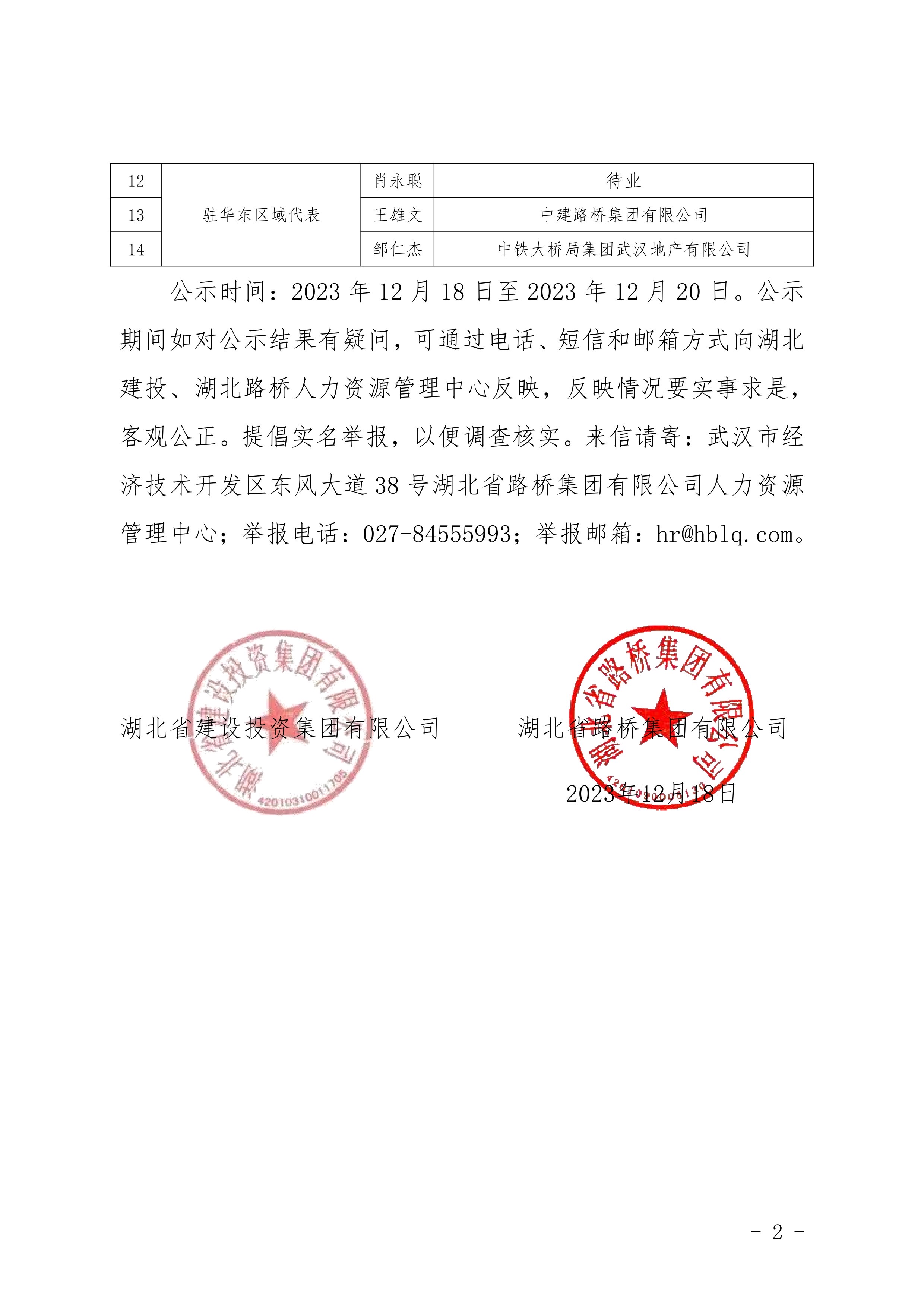 湖北省建设投资集团有限公司、华体会平台驻湖北联投区域公司总部管理岗位公开竞聘报名初审公示