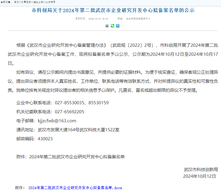近日,武汉市科创局公布了2024年第二批武汉市企业研究开发中心备案名单,湖北路桥旗下湖北瑞达科研检测有限公司研究开发中心荣幸入选。这是继荣获国家“高新技术企业”称号后,瑞达检测公司在科技创新领域取得的新突破。