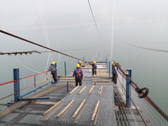 猫道在悬索桥施工中扮演着至关重要的角色,是悬索桥上部结构作业极其重要的高空施工平台,又被称为悬空的“生命线”,贯穿索股牵引、紧缆、吊索安装、主缆缠丝等一系列工序。
