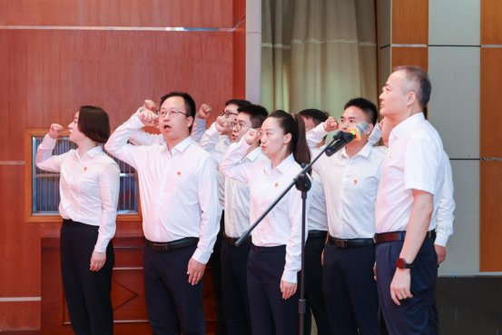 潘新平对受表彰的先进集体和个人表示祝贺,对党的“新鲜血液”的加入表示欢迎。他结合自身理论学习感悟,作了题为《强化党纪意识  严守“六大纪律” 为推进高质量发展提供坚强纪律保障》的党纪学习教育专题党课。
