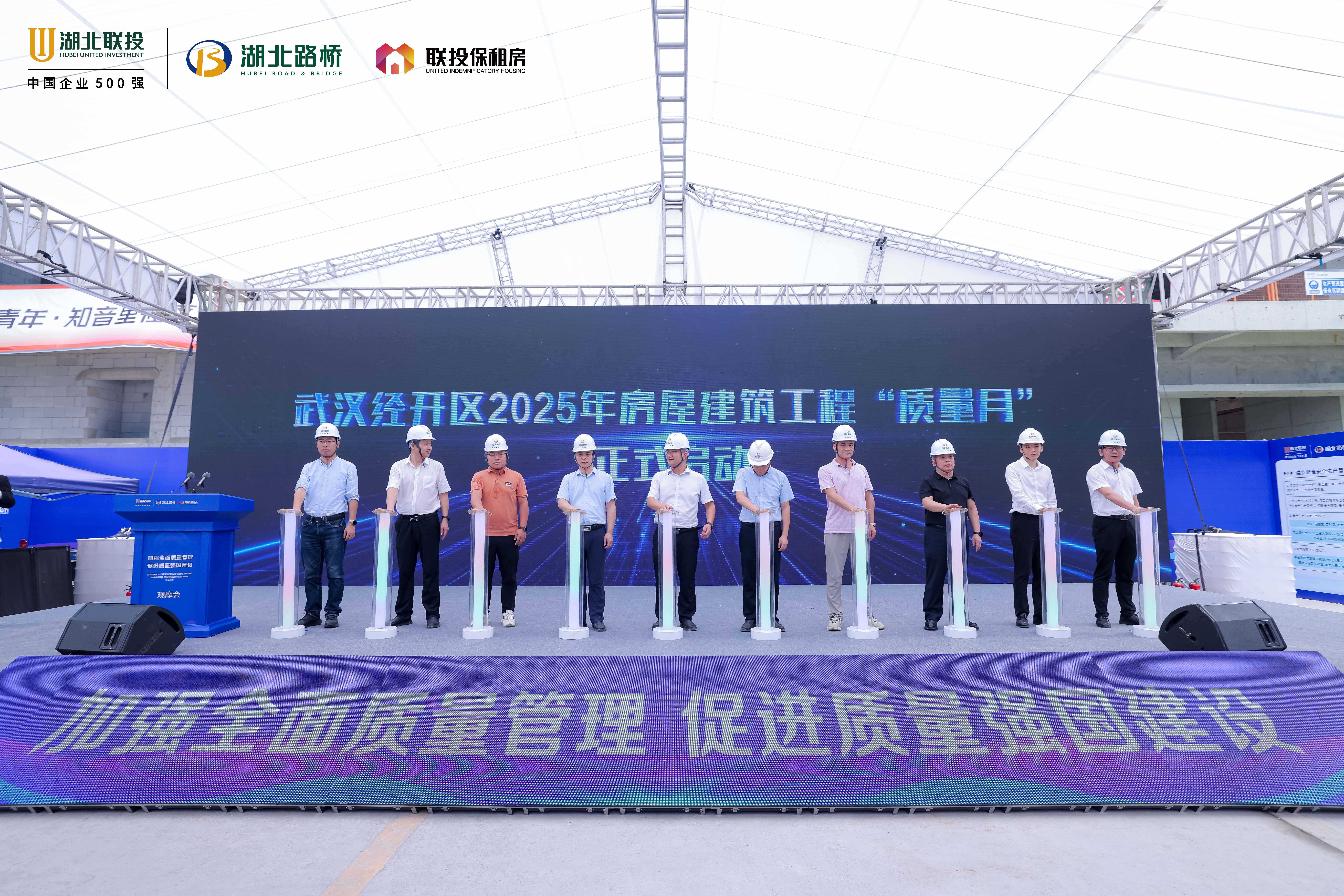 9月12日,2025年房屋建筑工程“质量月”启动仪式暨质量成果现场观摩会在湖北路桥大厦保障性租赁住房项目顺利举办。武汉经济技术开发区(汉南区)自然资源和城乡建设局党组织成员、副局长牟浩;湖北联投安全环保部(建设管理部)副总经理喻军;湖北路桥党委委员、副总经理、总工程师朱红明,党委委员、副总经理余国中;联投保租房公司党委委员、副总经理孟衡出席会议。